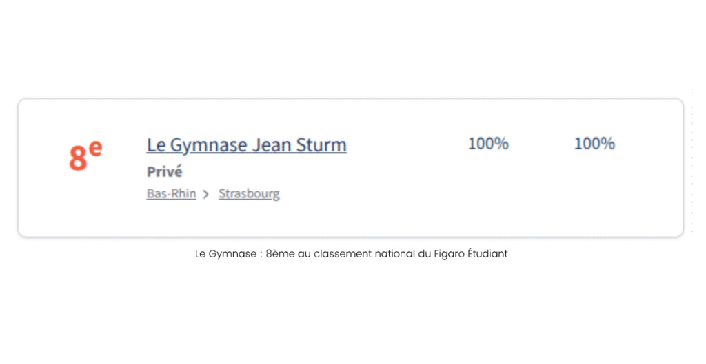Les pages de l’Internaute (9e au niveau national), du Figaro Étudiant (8e au niveau national) et même deuxième lycée de France sur les ondes de RTL (journal du 3 avril – reportage vers 19’30”) font apparaître le Gymnase comme un établissement solidement ancré parmi les meilleurs lycées de France. Dans ces trois classements, le Gymnase est le seul lycée de province à se glisser parmi les grands lycées parisiens. Voir le travail de nos élèves et l’engagement des équipes pédagogiques salués par des performances aussi élevées est, bien sûr, une immense satisfaction. C’est une reconnaissance de la valeur académique de notre établissement.